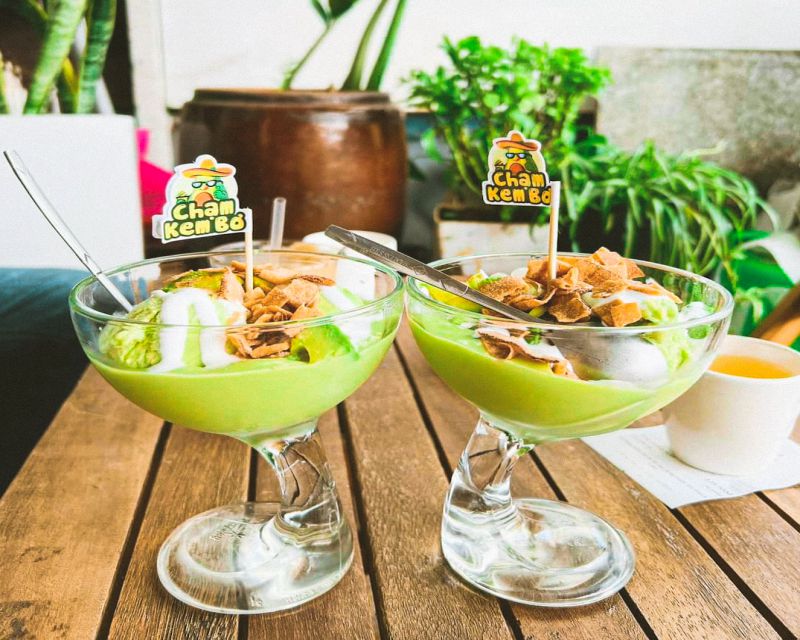 - Kem bơ ở đây nổi tiếng với độ béo mịn, thơm lừng mùi nước cốt dừa, tạo cảm giác tan chảy trong miệng.